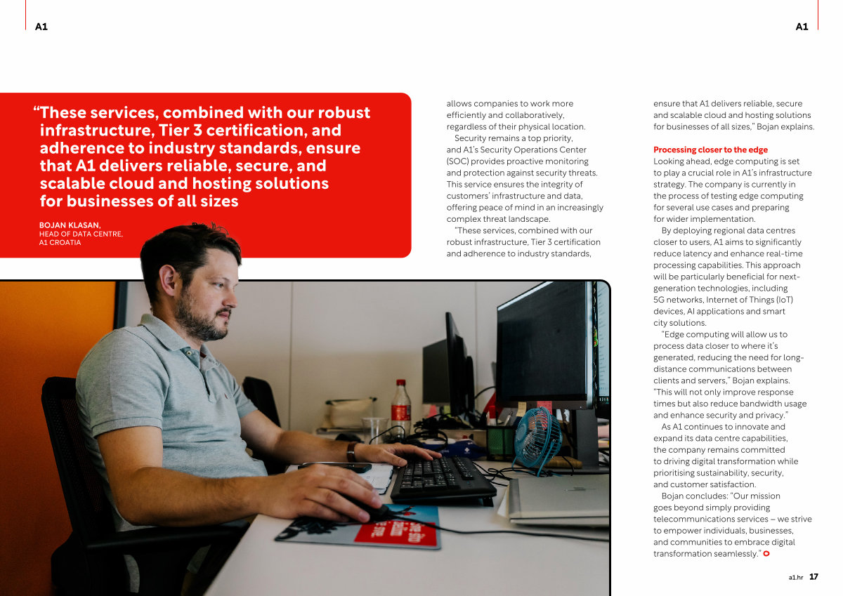 “ These services, combined with our robust infrastructure, Tier 3 certification and adherence to industry standards, ensure that A1 delivers reliable, secure and scalable cloud and hosting solutions for businesses of all sizes,” Bojan explains.