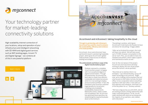 Through its partnership with m3connect , AccorInvest has used the cloud to enhance the sustainability , efficiency and resilience of its hotel portfolio