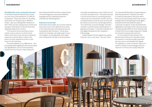 Robotics to assist staff At the back end of 2021 , AccorInvest realised there were a set of the different processes in the hotel that were still being carried out manually by staff members . “ Some were painful , for example , the night audit . As you can imagine , consolidating all of the data and closing down the day in all the systems