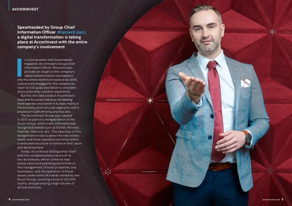 In a conversation with Sustainability magazine , AccorInvest ' s Group Chief Information Officer , Wojciech Łącz , provides an insight to the company ' s digital transformations and explains why the entire workforce needs to be 100 % onboard and engaged for the company to reach its ESG goals and deliver a consistent and outstanding customer experience .