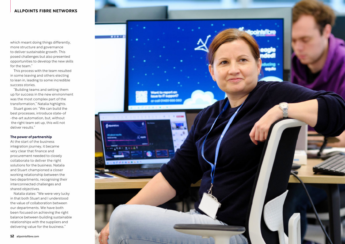 The power of partnership At the start of the business integration journey, it became very clear that finance and procurement needed to closely collaborate to deliver the right solutions for the business. Natalia and Stuart championed a closer working relationship between the two departments, recognising their interconnected challenges and shared objectives.