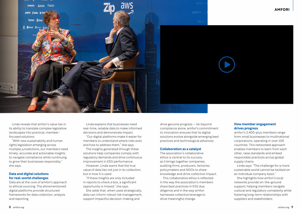 Linda reveals that amfori’ s value lies in its ability to translate complex legislative landscapes into practical, memberfocused solutions.