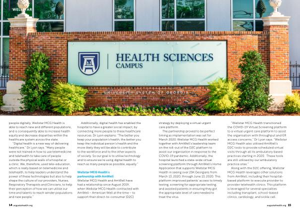 “ Wellstar MCG Health transitioned the COVID-19 Virtual Screening platform to a virtual urgent care platform to assist the organisation with throughput and ER access concerns,” Dr Lyon says.“ Wellstar MCG Health also utilised AmWell’ s D2C tools to provide scheduled virtual visits through all its ambulatory based practices starting in 2020. These tools are still utilised by our ambulatory practice sites.”
