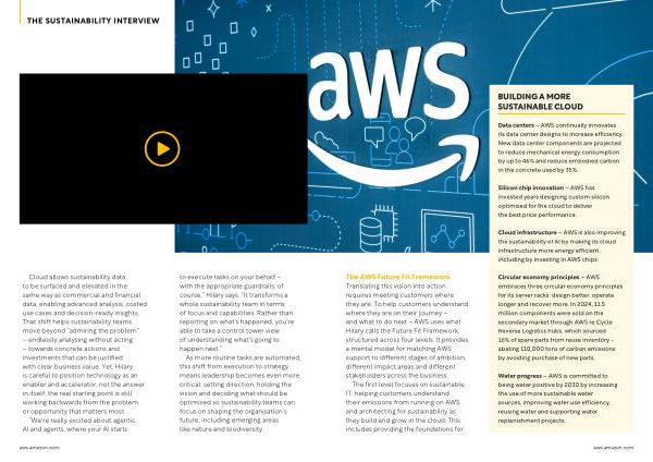 Data centers – AWS continually innovates its data center designs to increase efficiency. New data center components are projected to reduce mechanical energy consumption by up to 46 % and reduce embodied carbon in the concrete used by 35 %.