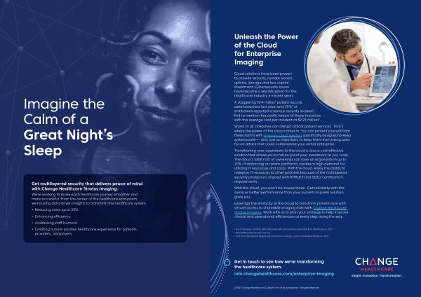 Leverage the elasticity of the cloud to transform patient care with secure access to shareable imaging data with Change Healthcare Stratus Imaging . Work with us to plan your strategy to help improve clinical and operational efficiencies at every step along the way .