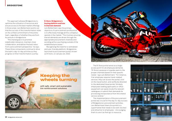 B-Store : Bridgestone ’ s buying platform and how it channels demand Lars Bettermann says the primary objective of a procurement professional is to effectively manage all the company ’ s spends in the market . “ This involves ensuring that all demands are driven through the appropriate procurement channels and avoiding ad hoc purchasing outside of the established processes .”