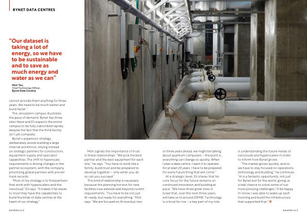 At a strategic level, Eli shares that his core focus for the future remains on continued innovation and building at pace.“ We have three great sites in Israel that, over the next three years, will take us to around 25MW. Technology is critical for me – a key part of my role is understanding the future needs of neoclouds and hyperscalers in order to inform how Bynet grows.