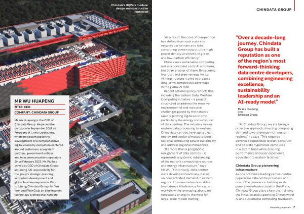 “ Over a decade-long journey, Chindata Group has built a reputation as one of the region’ s most forward-thinking data centre developers, combining engineering excellence, sustainability leadership and an AI-ready model”