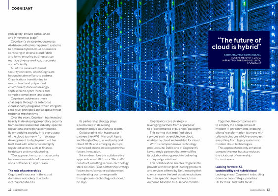 Cognizant ’ s strategy incorporates AI-driven unified management systems to optimise hybrid cloud operations consisting of diverse cloud fabric and form , ensuring businesses can manage diverse workloads securely and efficiently .