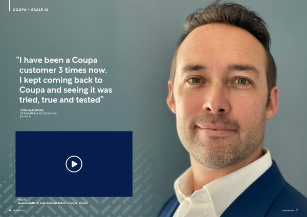 JOSH WALDRON , VP FINANCE & ACCOUNTING , SCALE AI ABOVE : Coupa ’ s platform helps Scale AI deliver ‘ amazing ’ growth