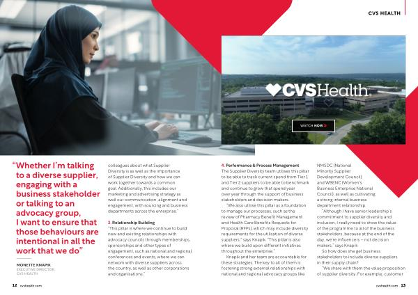 “ We also utilise this pillar as a foundation to manage our processes , such as the review of Pharmacy Benefit Management and Health Care Benefits Requests for Proposal ( RFPs ), which may include diversity requirements for the utilisation of diverse suppliers ,” says Knapik . “ This pillar is also where we build upon different initiatives throughout the enterprise .”