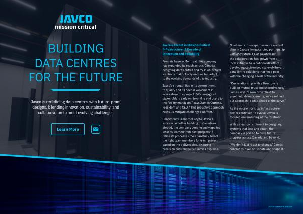 Nowhere is this expertise more evident than in Javco ’ s longstanding partnership with eStruxture . Over seven years , the collaboration has grown from a local initiative to a nationwide effort , developing customised state-of-the-art data centre solutions that keep pace with the changing needs of the industry .