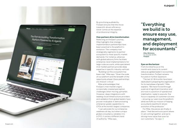 How partners drive transformation Reflecting on FloQast’ s journey, Mike highlights that strategic implementation partnerships have been essential to the platform’ s evolution. The company now strategically segments its partner ecosystem to meet specific market demands. For instance, alliances with global advisory firms facilitate enterprise-level implementations for large-scale accounts, while specialised mid-market partners provide deep expertise in specific industry verticals.“ Building out this ecosystem has been vital,” Mike says.“ Given the scale of our platform and the breadth of the opportunity ahead, these partnerships are mission-critical.”