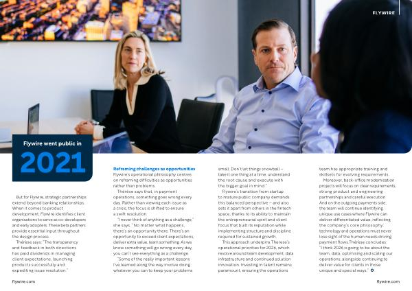 Reframing challenges as opportunities Flywire’ s operational philosophy centres on reframing difficulties as opportunities rather than problems.