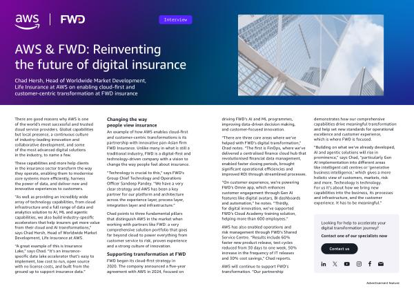 Chad Hersh, Head of Worldwide Market Development, Life Insurance at AWS on enabling cloud-first and customer-centric transformation at FWD insurance