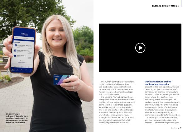 Cloud architecture enables resilience and innovation Global Credit Union operates what Lori calls a“ hybrid data centre structure”, combining on-premise infrastructure with cloud services, allowing workloads to run where they perform most effectively. Some technologies, Lori explains, benefit from physical network proximity, while others thrive in cloud environments. Global Credit Union’ s architecture connects these systems all while maintaining security and performance standards for its members.