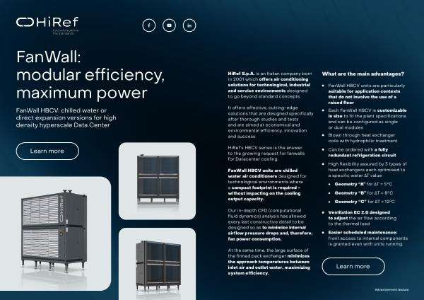 FanWall HBCV : chilled water or direct expansion versions for high density hyperscale Data Center