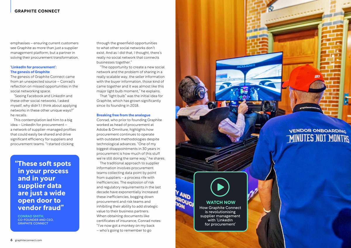 ‘ LinkedIn for procurement’: The genesis of Graphite The genesis of Graphite Connect came from an unexpected source – Conrad’ s reflection on missed opportunities in the social networking space.