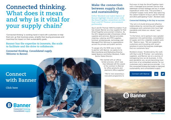Murdock closes : “ Evidenced by the work with Guy ’ s and St Thomas ’, our customers , suppliers , and Banner are on a journey of reimagining how we do business . In this post-pandemic era , we are becoming more and more of an embedded solution for our customers and a lead service provider . It is this connected thinking that leads to improved sustainability and consolidated supply .”