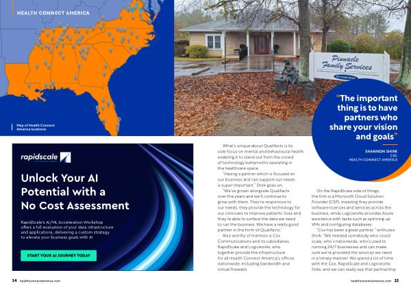 Also worthy of mention is Cox Communications and its subsidiaries , RapidScale and Logicworks , who together provide the infrastructure for all Health Connect America ’ s offices nationwide , including bandwidth and virtual firewalls .