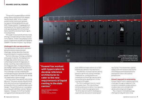Huawei ’ s approach to sustainability Huawei Digital Power is addressing these challenges through an approach that combines renewable energy solutions , modular data centre designs and advanced cooling technologies .