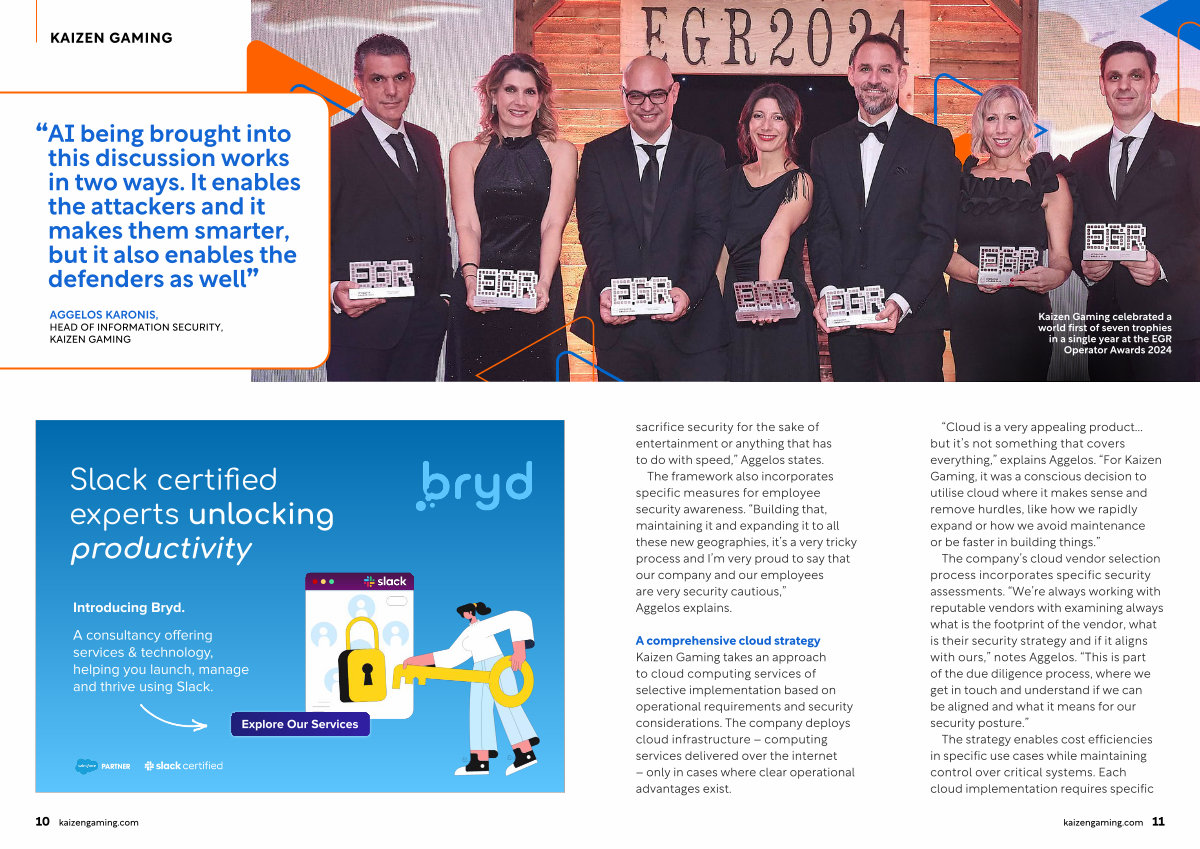 Kaizen Gaming celebrated a world first of seven trophies in a single year at the EGR Operator Awards 2024 sacrifice security for the sake of entertainment or anything that has to do with speed,” Aggelos states.