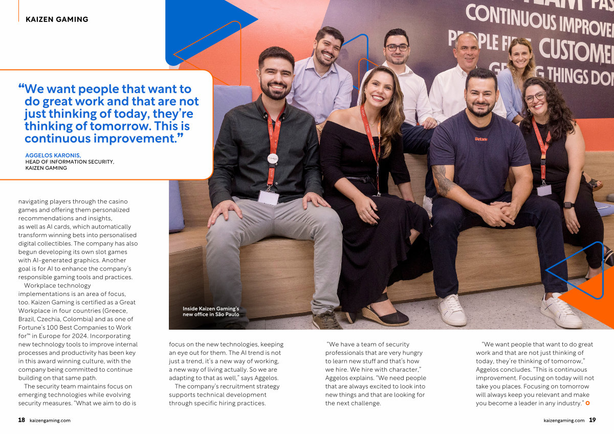 Workplace technology implementations is an area of focus, too. Kaizen Gaming is certified as a Great Workplace in four countries( Greece, Brazil, Czechia, Colombia) and as one of Fortune’ s 100 Best Companies to Work for™ in Europe for 2024. Incorporating new technology tools to improve internal processes and productivity has been key in this award winning culture, with the company being committed to continue building on that same path.