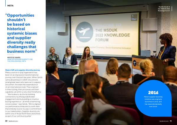 Meta ’ s S2P and supplier diversity journey Meta ’ s source-to-pay organisation has been on an impressive transformational journey over the past few years . When Sands came aboard back in 2019 , she joined a small global team who were set to expand . Since then , the team has expanded out on an international scale . They ’ ve grown in their tooling , their processes and their capability , all within a very short timeframe .