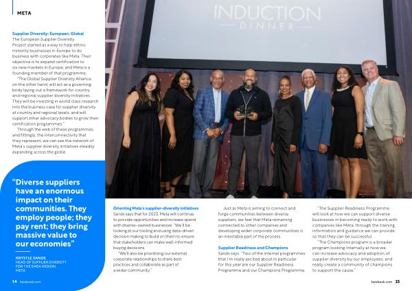 “ The Champions program is a broader program looking internally at how we can increase advocacy and adoption of supplier diversity by our employees , and really create a community of champions to support the cause .” facebook . com 15