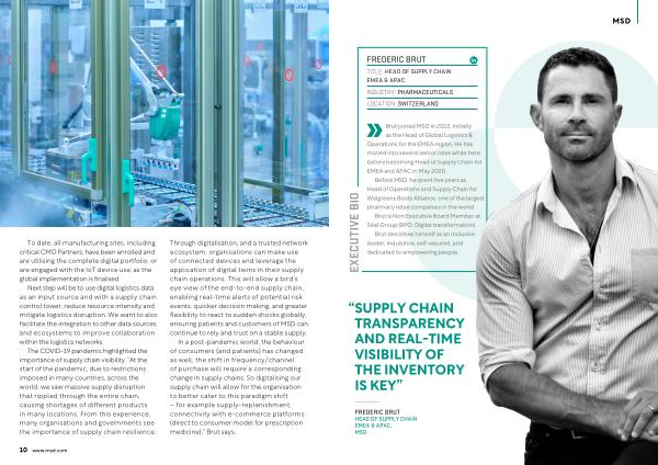 Through digitalisation , and a trusted network ecosystem , organisations can make use of connected devices and leverage the application of digital twins in their supply chain operations . This will allow a bird ’ s eye view of the end-to-end supply chain , enabling real-time alerts of potential risk events , quicker decision making , and greater flexibility to react to sudden shocks globally , ensuring patients and customers of MSD can continue to rely and trust on a stable supply .