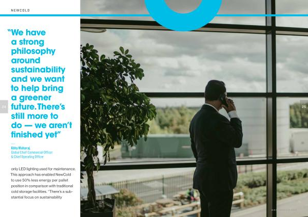 only LED lighting used for maintenance. This approach has enabled NewCold to use 50 % less energy per pallet position in comparison with traditional cold storage facilities.“ There’ s a substantial focus on sustainability