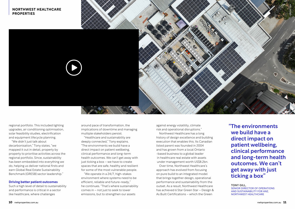 “ We didn’ t just talk about decarbonisation,” Tony states,“ we mapped it out in detail, property by property to prioritise activities across the regional portfolio. Since, sustainability has been embedded into everything we do, helping us deliver national firsts and earn Global Real Estate Sustainability Benchmark( GRESB) sector leadership.”