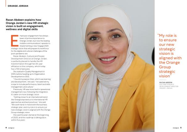 Razan Abdeen explains how Orange Jordan ’ s new HR strategic vision is built on engagement , wellness and digital skills