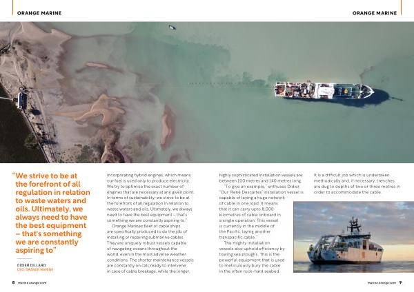 ORANGE MARINE highly sophisticated installation vessels are between 100 metres and 140 metres long .