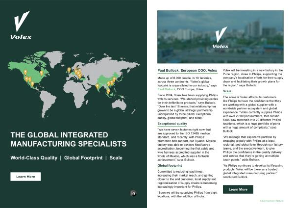 “ As Philips continues to develop its lifesaving products , Volex will be there as a trusted global integrated manufacturing partner ,” concluded Bullock .