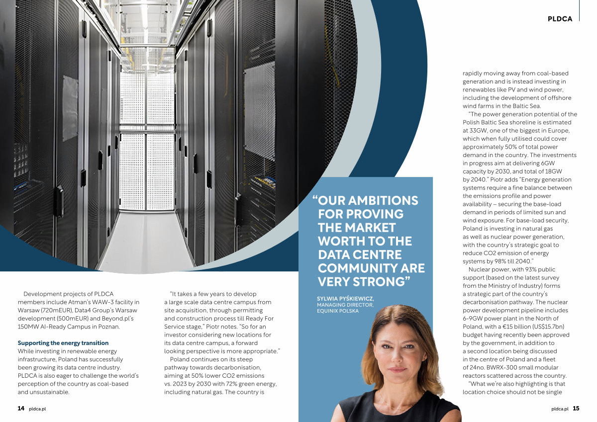 Supporting the energy transition While investing in renewable energy infrastructure, Poland has successfully been growing its data centre industry. PLDCA is also eager to challenge the world’ s perception of the country as coal-based and unsustainable.