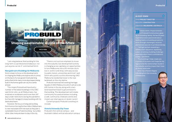 “ This means Probuild will have built a number of the tallest buildings in the CBD ,” said Simm who , as all Melburnians , has endured six lockdowns and more than 267 days under restrictions during the pandemic but has still managed to keep building with his dedicated team .