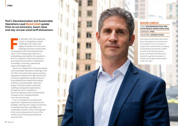 PwC’ s Decarbonisation and Sustainable Operations Lead David Linich guides firms to cut emissions, boost value and stay circular amid tariff distractions