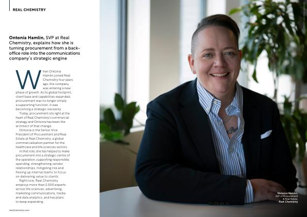 When Ontonia Hamlin joined Real Chemistry four years ago, the company was entering a new phase of growth. As its global footprint, client base and capabilities expanded, procurement was no longer simply a supporting function, it was becoming a strategic necessity.