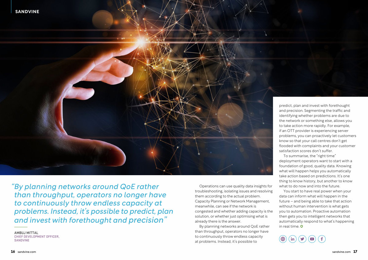 “ By planning networks around QoE rather than throughput, operators no longer have to continuously throw endless capacity at problems. Instead, it’ s possible to predict, plan and invest with forethought and precision”