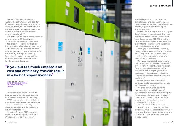 Dourlens says the company ’ s international network relies on 31 depots across 24 countries , most of which have been established in cooperation with global logistics and supply chain company Marken . And it is Marken – the clinical subsidiary of UPS Healthcare – that manages Sanofi ’ s warehousing and logistics , including last-mile delivery and reverse logistics ( moving goods from customers back to sellers or manufacturers ).