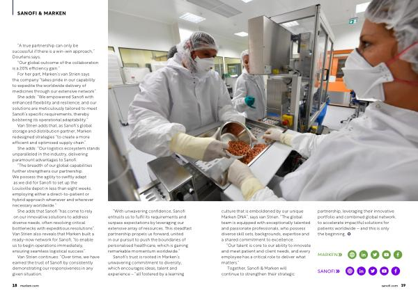 Together , Sanofi & Marken will continue to strengthen their strategic partnership , leveraging their innovative portfolio and combined global network , to accelerate impactful solutions for patients worldwide – and this is only the beginning .