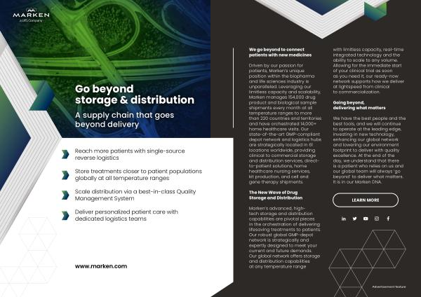 Marken ’ s advanced , hightech storage and distribution capabilities are pivotal pieces in the orchestration of delivering lifesaving treatments to patients . Our robust global GMP-depot network is strategically and expertly designed to meet your current and future demands . Our global network offers storage and distribution capabilities at any temperature range