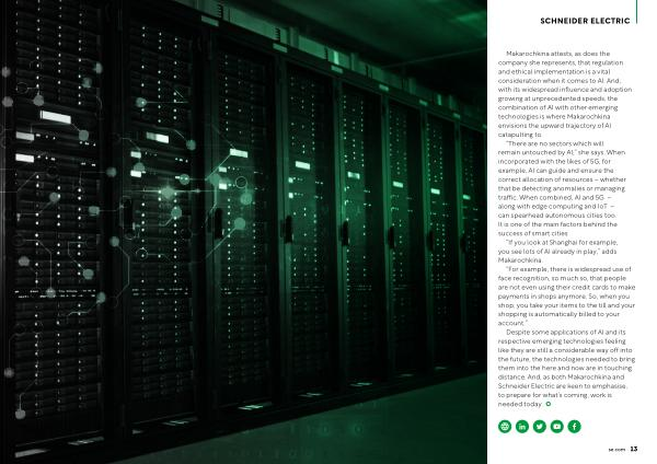 Despite some applications of AI and its respective emerging technologies feeling like they are still a considerable way off into the future , the technologies needed to bring them into the here and now are in touching distance . And , as both Makarochkina and Schneider Electric are keen to emphasise , to prepare for what ’ s coming , work is needed today . se . com 13