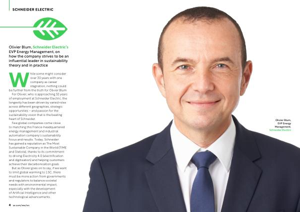 Olivier Blum , Schneider Electric ’ s EVP Energy Management , on how the company strives to be an influential leader in sustainability theory and in practice