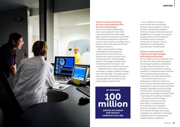 Late in 2024 the company launched the first new therapy for brain cancer patients in almost 24 years, representing validation of Servier’ s research and development capabilities in oncology. Successfully bringing a brain cancer treatment to market requires sustained investment in research, clinical development and regulatory expertise over multiple years.