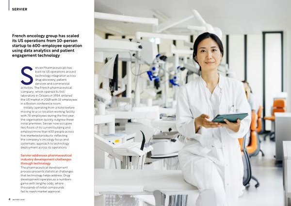 Servier Pharmaceuticals has built its US operations around technology integration across drug discovery, patient services and commercial activities. The French pharmaceutical company, which opened its first laboratory in Orleans in 1954, entered the US market in 2018 with 10 employees in a Boston conference room.