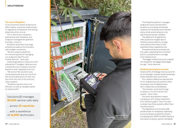 The NinjaOne platform manages endpoints across Solutions30’ s workforce, providing centralised visibility into hardware and software status while automating security patching and system updates.