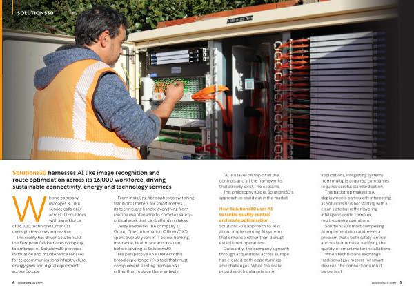 Solutions30 harnesses AI like image recognition and route optimisation across its 16,000 workforce, driving sustainable connectivity, energy and technology services