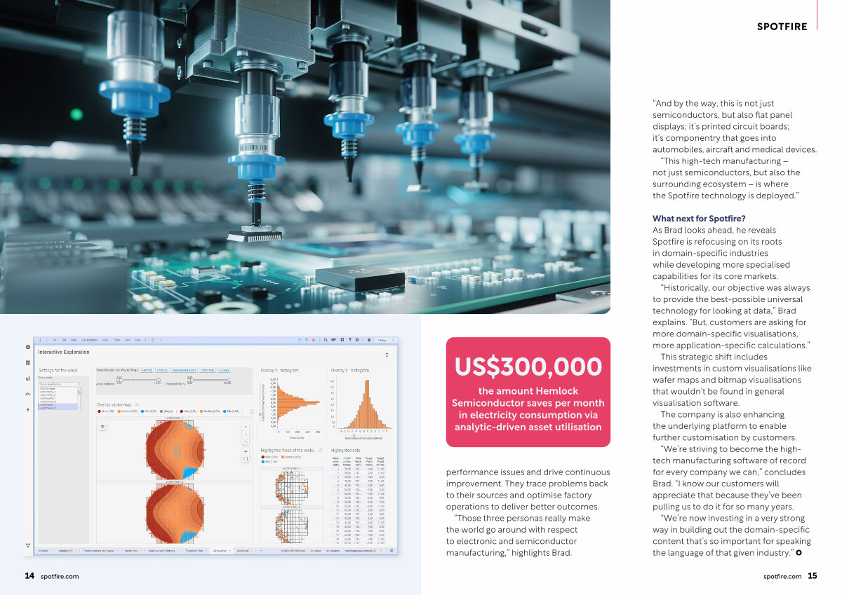 “ This high-tech manufacturing – not just semiconductors, but also the surrounding ecosystem – is where the Spotfire technology is deployed.”